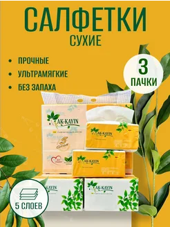 Салфетки бумажные сухие 3 уп в мягкой упаковке на стол