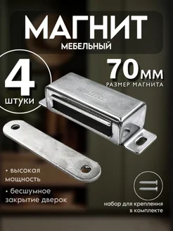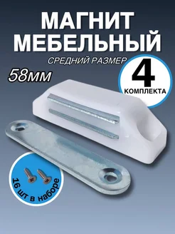 Магнит мебельный 59 мм для дверей с саморезами 4 штуки