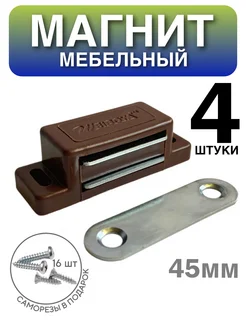 Магнит мебельный 45 мм коричневый для дверей 4 штуки