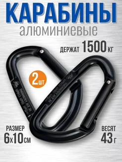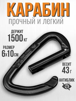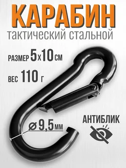 Карабин 10 х 6 см тактический алюминиевый черный на 1500 кг