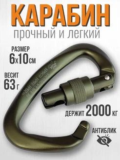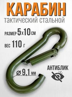 Карабин 10 см тактический алюминиевый зеленый с муфтой