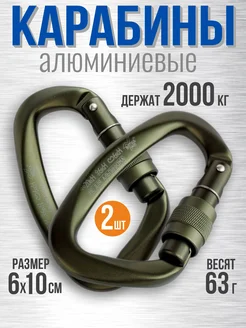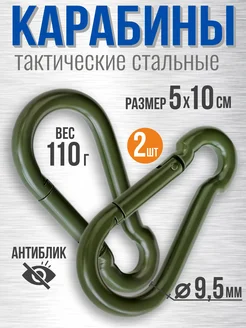 Карабин 10 см тактический алюминиевый зеленый с муфтой 2 шт