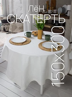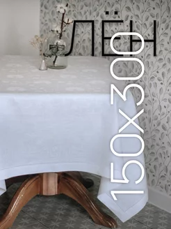 Скатерть Белая 300*150 см тканевая на стол Лен 100%