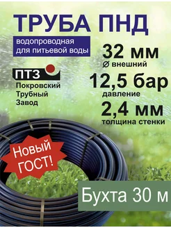 Труба ПНД (30 м 32 мм 2,4 мм) водопроводная питьевая