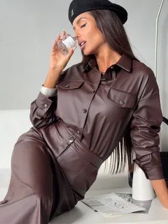 Костюм с юбкой женский кожаный праздничный