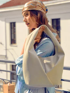 Сумка A4 хобо через плечо бежевая