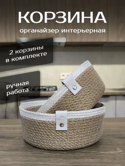 Джутовая плетеная корзина для хранения дома и на даче белый