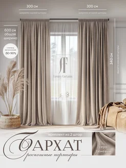 шторы бархат 600 (300-300) высотой 300см на высокие потолки