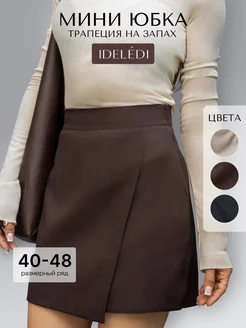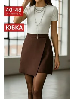Юбка мини школьная офисная короткая трапеция на запах осень