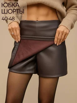 Мини юбка шорты офисная кожаная короткая на запах осень