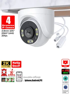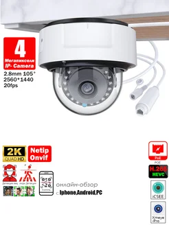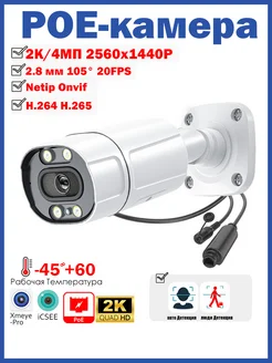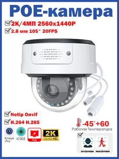 IP-камера 4 МП POE Домашняя водонепроницаемая 2560x1440