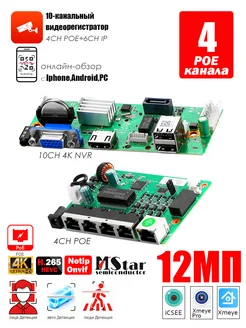 Плата сетевой видеорегистратор 4 IP POE камер 4K 8Мп Xmeye