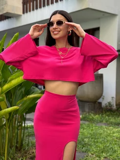 Костюм с юбкой и кофтой трикотажный повседневный