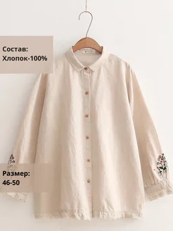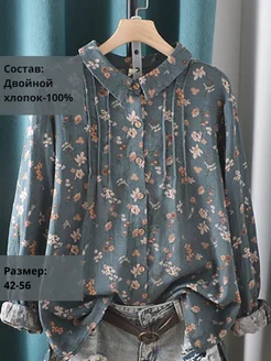 Рубашка удлиненная хлопок с цветочным принтом бохо