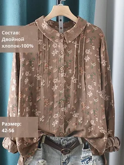 Рубашка с длинным рукавом хлопок с цветочным принтом