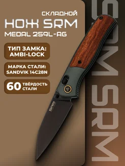 Складной нож SRM Medal 259L-AG, сталь 14C28N