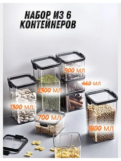Набор из 6 контейнеров прозрачные с чёрным кантом