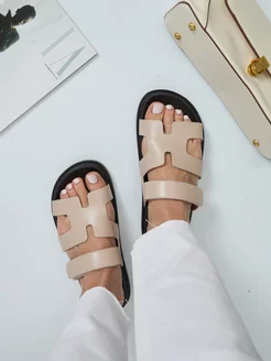 Шлепки летние кожаные пантолеты