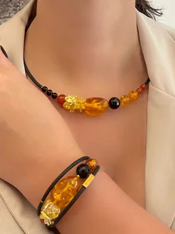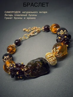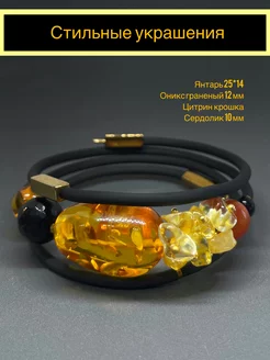 Браслет с натуральным цитрином, сердоликом и янтарем