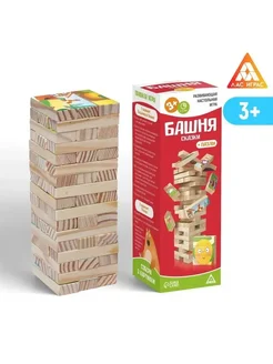 Настольная игра Падающая башня. Сказки + пазлы 54 бруска
