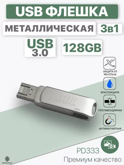USB Флешка 128 ГБ 3в1, Флеш-накопитель, USB flash 3.0