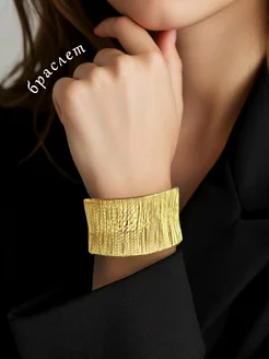 Браслет на руку бижутерия широкий безразмерный золотистый
