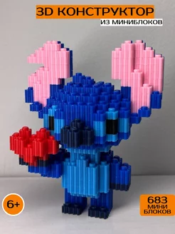 3д конструктор из миниблоков Стич с сердцем размер XL
