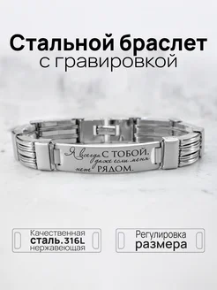 Стальной браслет с гравировкой "Я всегда с тобой"