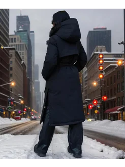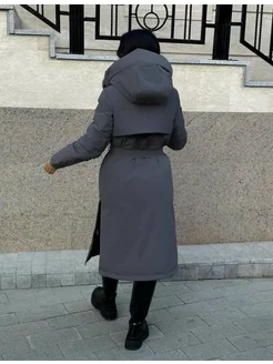 Пуховик зимний длинный с поясом