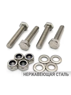 Болт М6х40мм с гайками и шайбами, нержавеющая сталь, 4шт