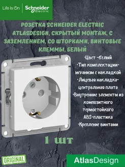 Розетка со шторками Шнайдер Атласдизайн 1 шт