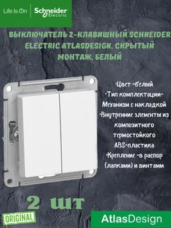 Выключатель 2-клавишный Шнайдер Атлас Дизайн 2 шт