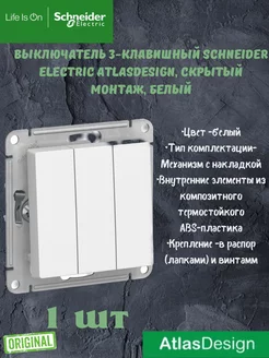 Выключатель 3-клавишный Шнайдер Атласдизайн 1 шт