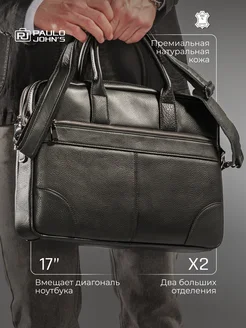 Кожаная деловая сумка портфель для ноутбука 17,3"