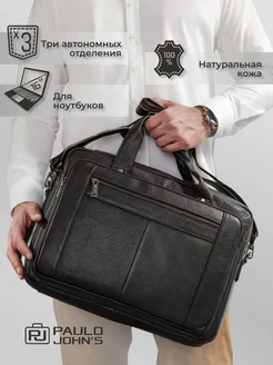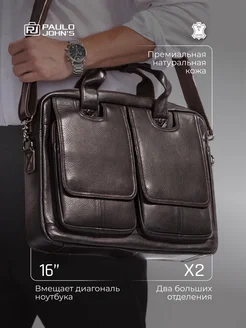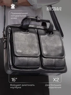 Деловая кожаная сумка портфель для ноутбука 16" в офис