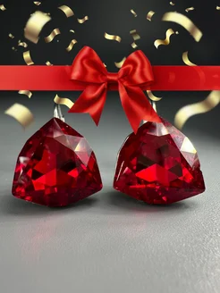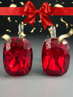 Серьги крупные с большим камнем красные