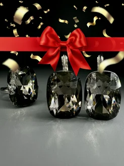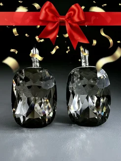Серьги крупные с большим камнем черные
