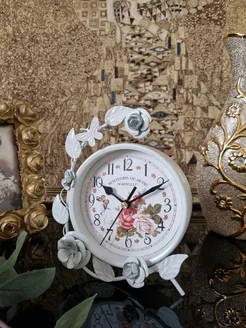 Часы настольные с цветами 17см белые