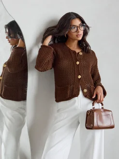 Кардиган укороченный летний тонкий в сетку на пуговицах