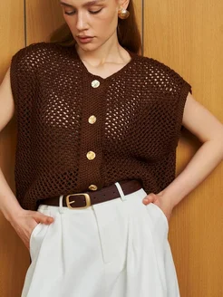 Жилетка летняя вязаная в сеточку на пуговицах