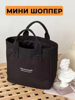 Сумка мини шоппер тканевая на молнии