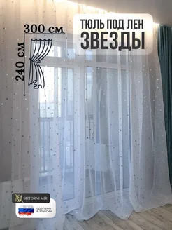 Тюль под лен в гостиную и детскую 200х240 см со звездами