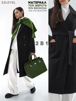 Шерстяное пальто халат с карманами 2 в 1