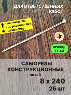 Саморезы по дереву 8х240 конструкционные, желтые 25 шт