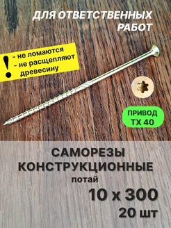 Саморезы по дереву 10х300 конструкционные, желтые 20 шт