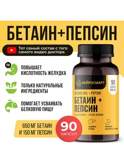 Бетаин гидрохлорид + Пепсин, 90 капсул