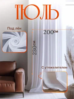 Тюль под лён с утяжелителем в гостиную и спальню 200*260 см