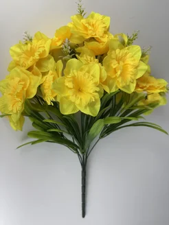Искусственные цветы нарциссы на кладбище, цветы на Пасху