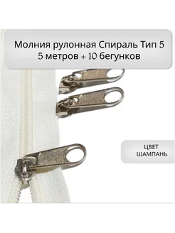 Молния рулонная спираль тип 5 бежевая 5 метров с бегунками