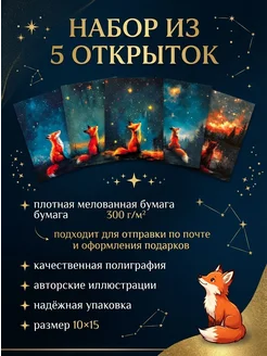 Лисята и звёзды набор из 5 ярких открыток для посткроссинга
